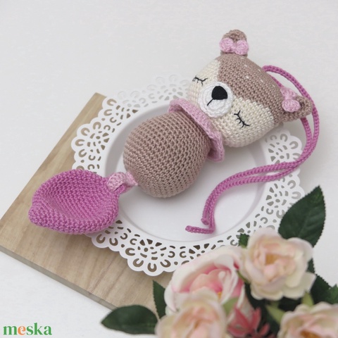 Horgolt Mia őzike csörgő-zörgő babajáték, babakocsira, kiságyra, babatornáztatóra rögzíthető