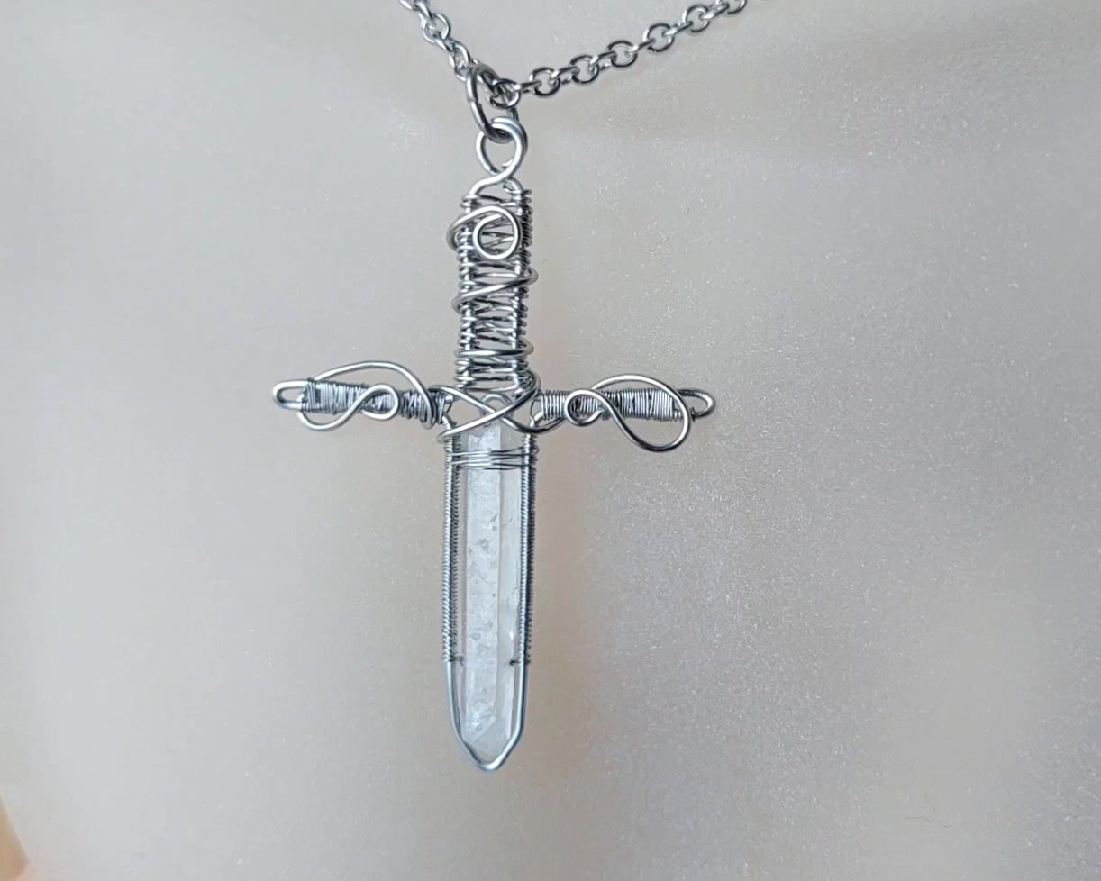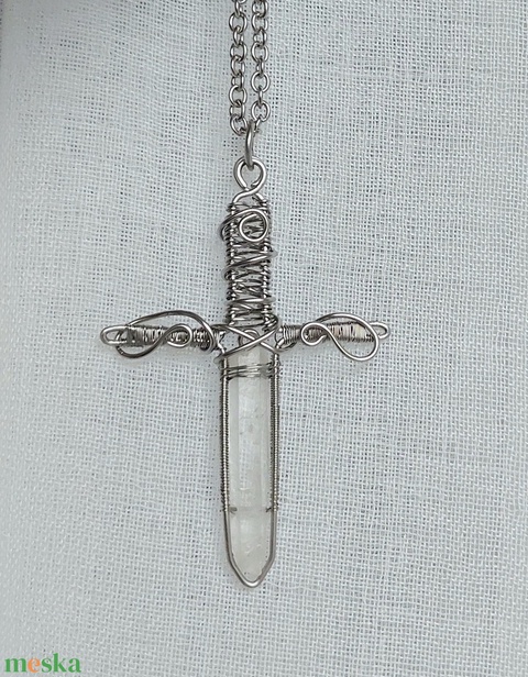 Acél kard férfi nyaklánc hegyikristállyal