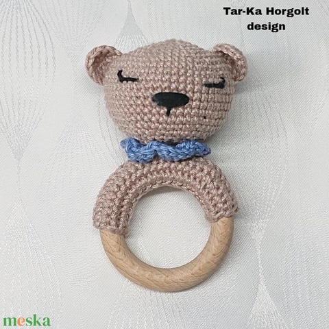 Horgolt maci csörgő