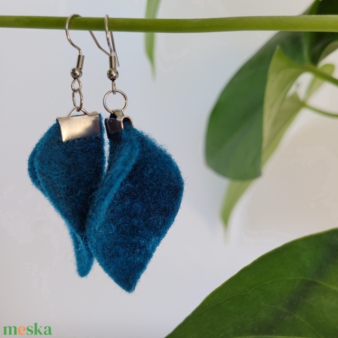 Tündérlevél fülbevaló- petrolkék/sötéttürkiz