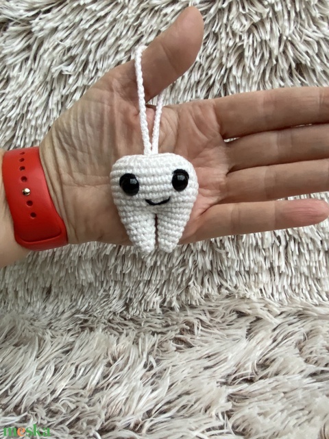 Mosolygós horgolt fog kulcstartó, táskadísz