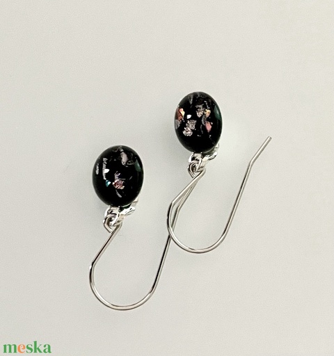 Éjfekete lógós fülbevaló, üvegékszer