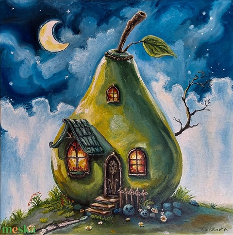 Konstantin Pál: Körte házikó olajfestmény vásznon