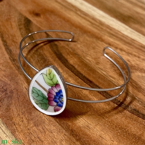 Mentett Herendi darabok - virágos porcelán nemesacél karperec - állítható