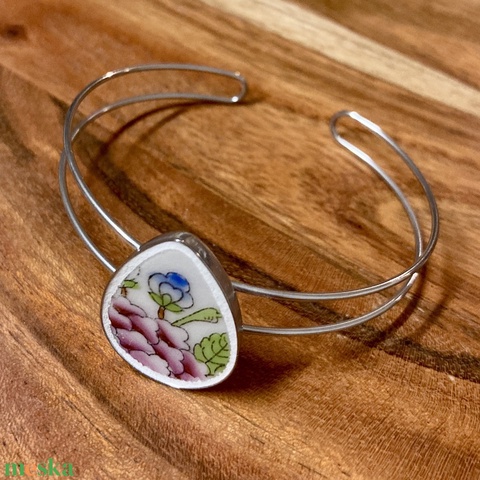 Mentett Herendi darabok - virágos porcelán nemesacél karperec - állítható