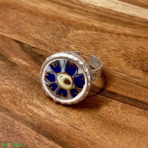 Mentett Zsolnay darabok - porcelán gyűrű - búzavirágos, állítható