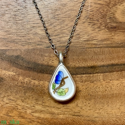 Mentett Herendi darabok - pici csepp porcelán nyaklánc - nemesacél lánccal