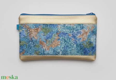 textilbőr, pamutvászon, fémkellékek, cipzár, gyöngyvászon heveder, mozaik, oldaltáska, kistáska