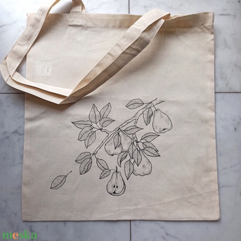 Festett vászontáska - körtefa