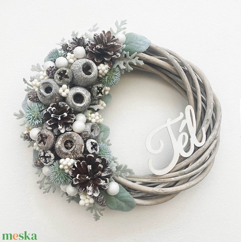 - Anyaga: koszorú alap, gömbök, műfenyő, vadgesztenye, toboz