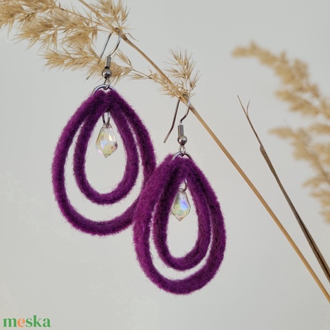 Gyöngyös cseppecskék fülbevaló- lila meleg színű