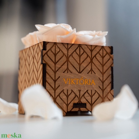 Örök Rózsa, gravírozott fa dobozban, Egyedi Névre szóló ajándék,