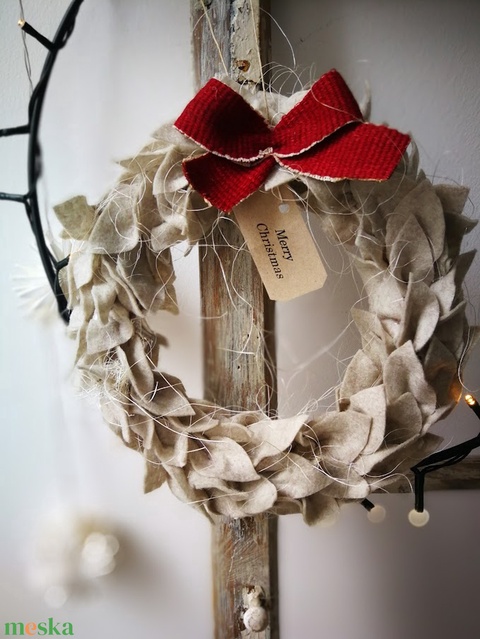 Natúr skandináv karácsonyi kopogtató filc levelekből