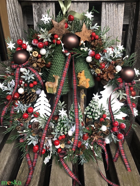 Karácsonyi ajtódísz fenyőerdőben