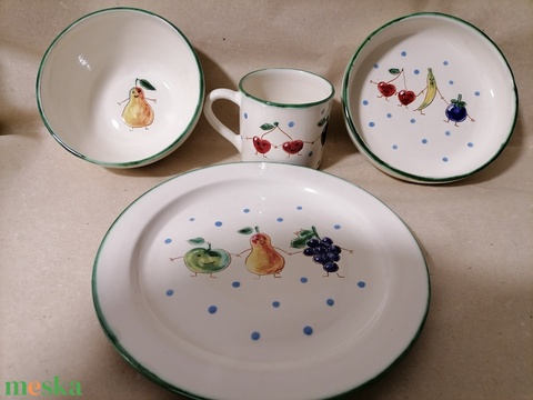 - Anyaga: vörösre égő agyag, fehér engób, színtelen ólommentes máz