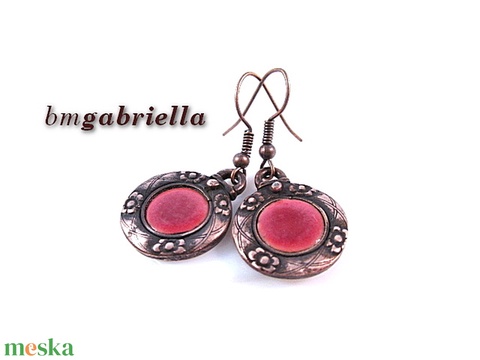 Rózsás - tűzzománc fülbevaló, egyedi tervezésű kézműves ékszer