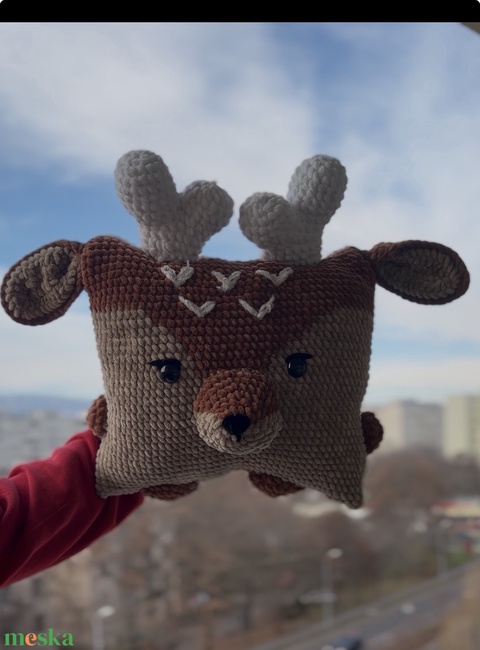 Horgolt rénszarvas párna világító szarvakkal