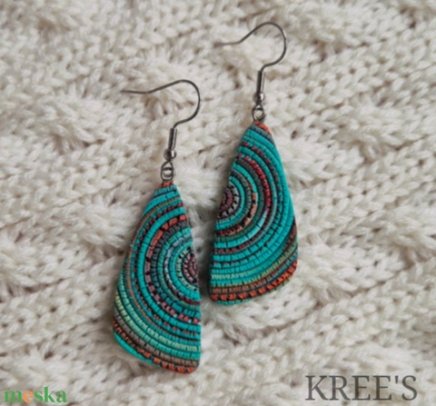 Türkiz-barna hullámok, ékszergyurma fülbevaló
