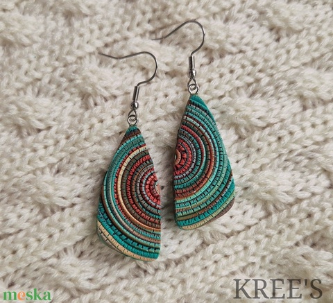 Türkiz-barna hullámok, ékszergyurma fülbevaló