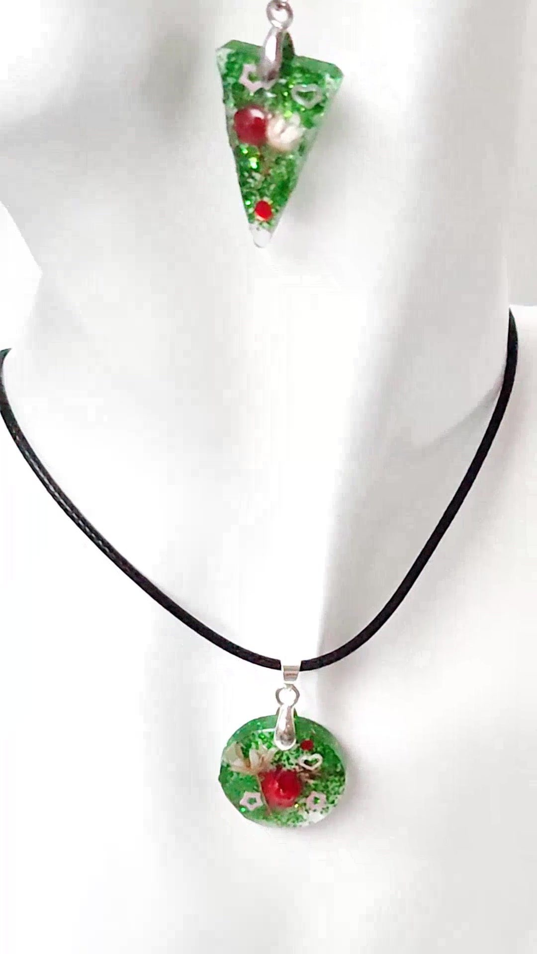 Ragyogó Karácsonyi Bogyók – Ünnepi Zöld Csillogó Gyanta Ékszerszett