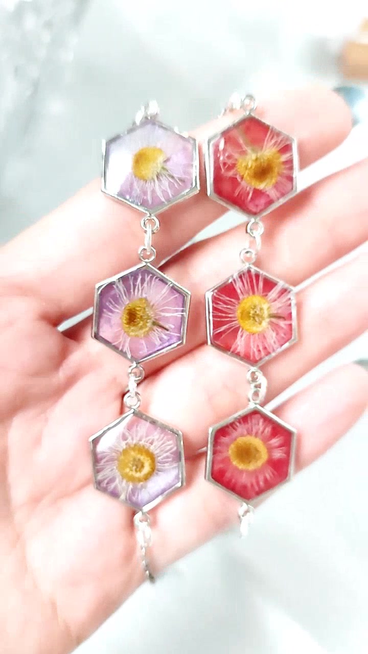 - Anyaga: epoxi gyanta, préselt virág, fém