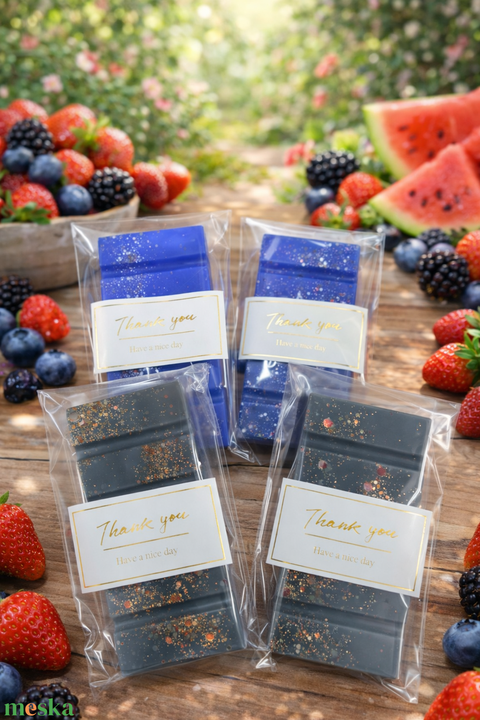- Anyaga: szójaviasz, glitter, színezék, illatolaj