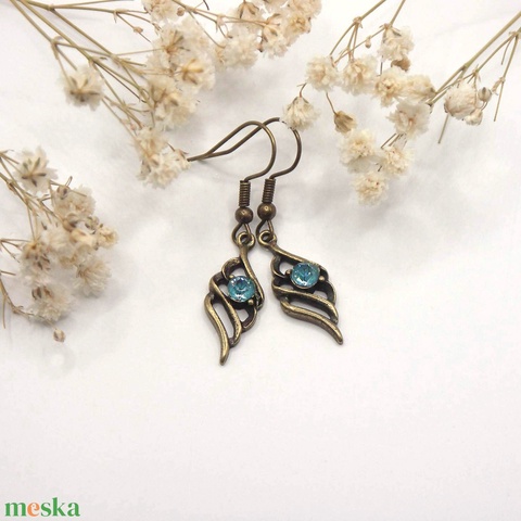 Tengerkék Swarovski kristályos, egyedi készítésú, angyalszárny formájú fülbevaló - Lagúna
