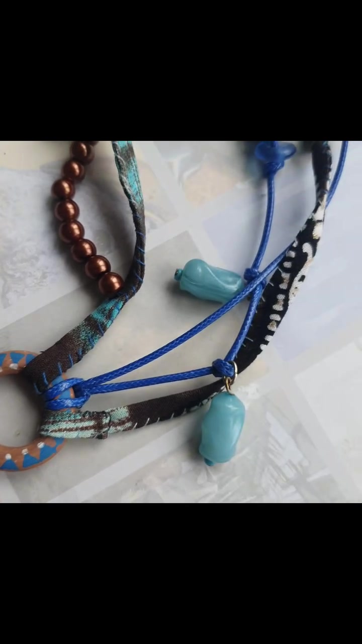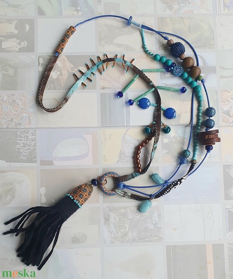 - Anyaga: textil zsinórok, fagyöngy, acril gyöngy, üveg gyöngy, türkinit gyöngy, fa karika, bojt
