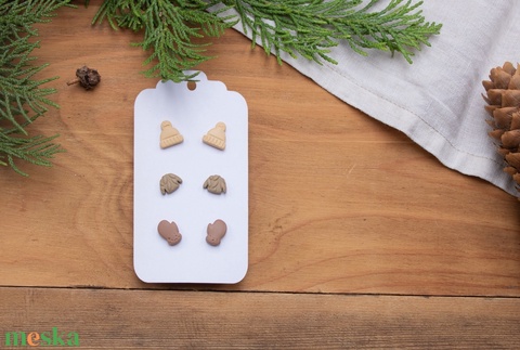 Pötty fülbevaló szett, Téli fülbevaló, Bedugós fülbevaló, Polimer süthető gyurma, Pasztell színek, Sapka Pulóver Kesztyű