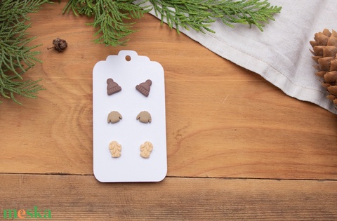 Pötty fülbevaló szett, Téli fülbevaló, Bedugós fülbevaló, Polimer süthető gyurma, Pasztell színek, Sapka Pulóver Kesztyű