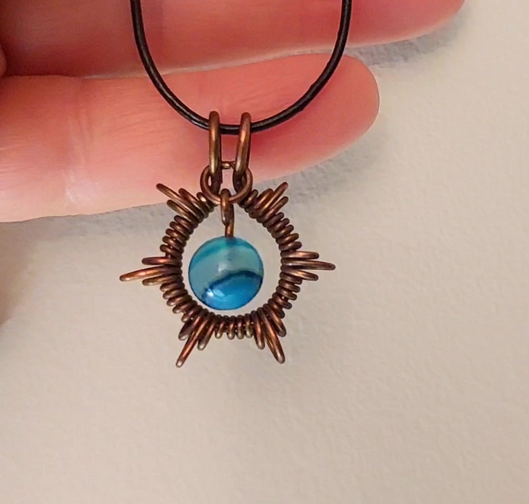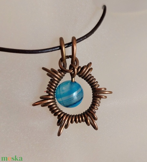 Apró réz gyerek nyaklánc kék achát ásvánnyal