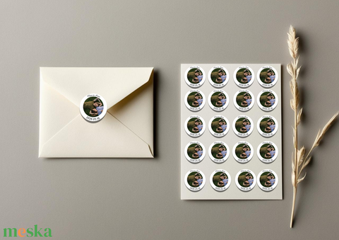 Fényképes kör matrica , címke borítékhoz, ajándékhoz