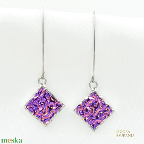 - Anyaga: réz fólia, ezüst tartalmú ólommentes ón, felületkezelő anyagok, rózsa lila irizáló dichroic ékszerüveg