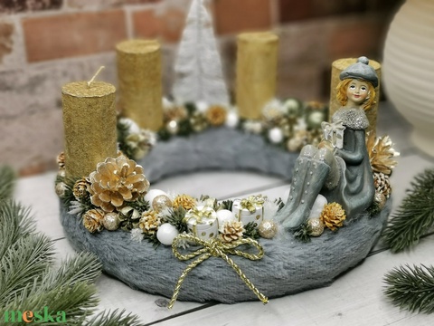 - Anyaga: szalmakoszorú, termések, díszek, gyertyák