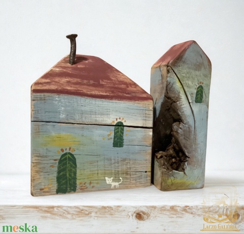 Könyvtámasz - Tölgyfa - Polc dísz, Faházikó - Ajándék ötlet, Rusztikus Dekoráció, Ház, Házikó, Cica, Macska, 1 pár