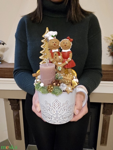 Mézeskalács jelenetes óriás bögrés dekoráció
