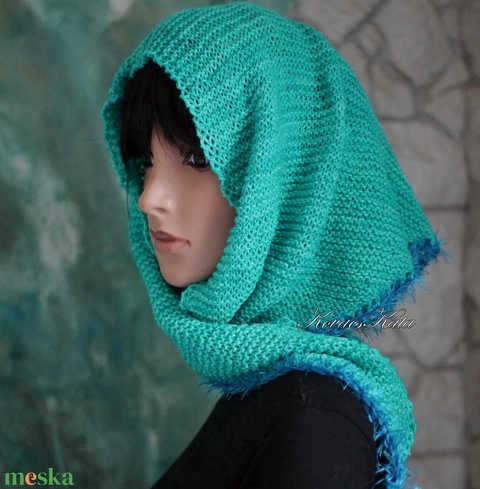 DELUXE SILK VÁLLKENDŐ - exkluzív kézzel kötött-festett selyem-jak- merinó kendő / bright aqua KÉSZLETEN ua