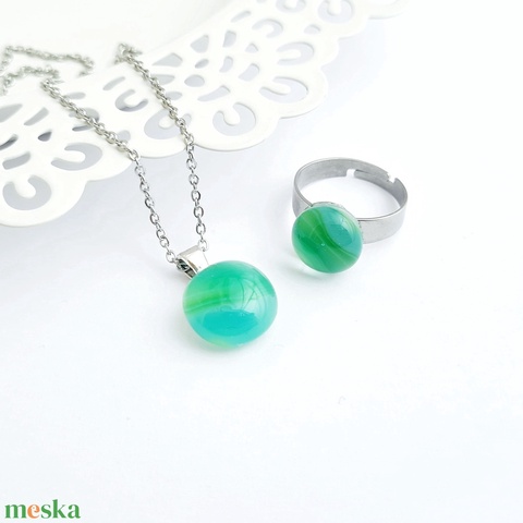 Zöld-türkiz üveg ékszerszett