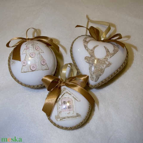 3 darabos karácsonyfadísz szett – szív és gömbök