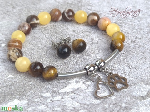 Narancs kalcit és tigrisszem szett