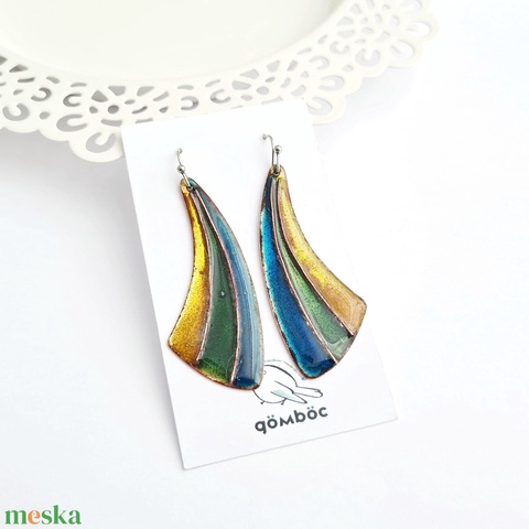 Tűzzománc zöld-kék nemesacél fülbevaló