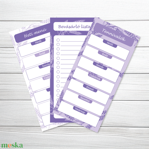Nyomtatható heti tervező levendula mintával (digitális termék)