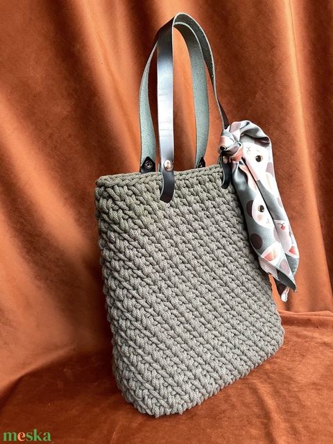 - Anyaga: pamut fonal, bőr vállpánt, műbőr alap