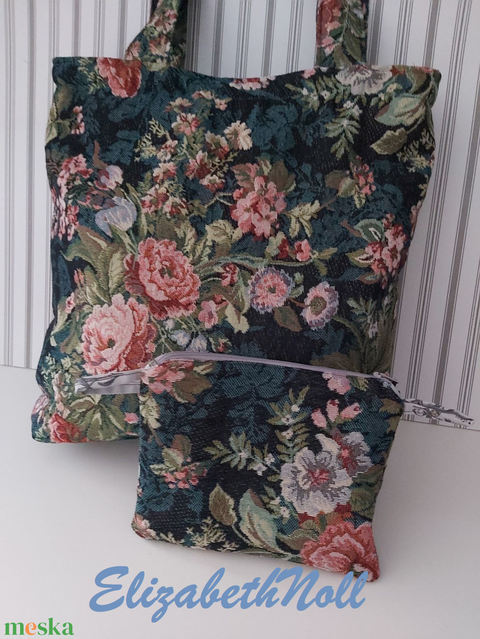 Egyedi bevásárlótáska virágmintás gobelin anyagból