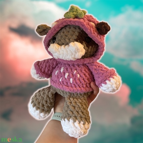 Horgolt tehén eper kapucniban