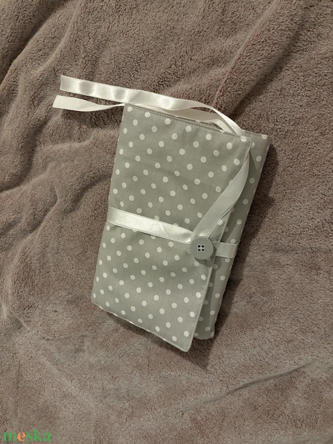 Vászon könyvborító szürke-fehér pöttyös