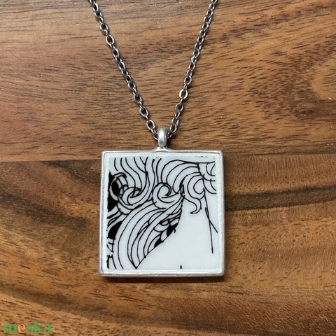 Mentett porcelán darabok - nyaklánc - négyzet medál nemesacél lánccal