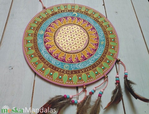Amulett mandala, Életvirága szimbólummal és rovás írás mantrákkal