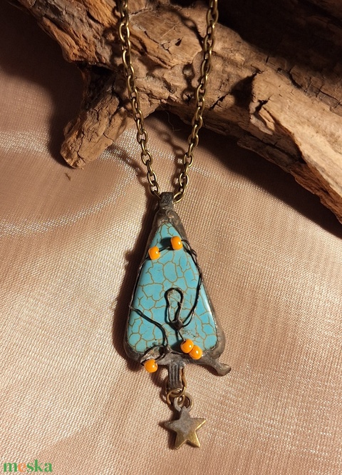 Antik hatású nyaklánc türkiz medállal csillagos függővel