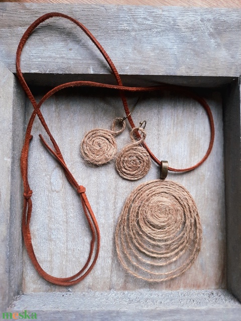 - Anyaga: kenderzsinór, bronz szerelék, bőrszál
